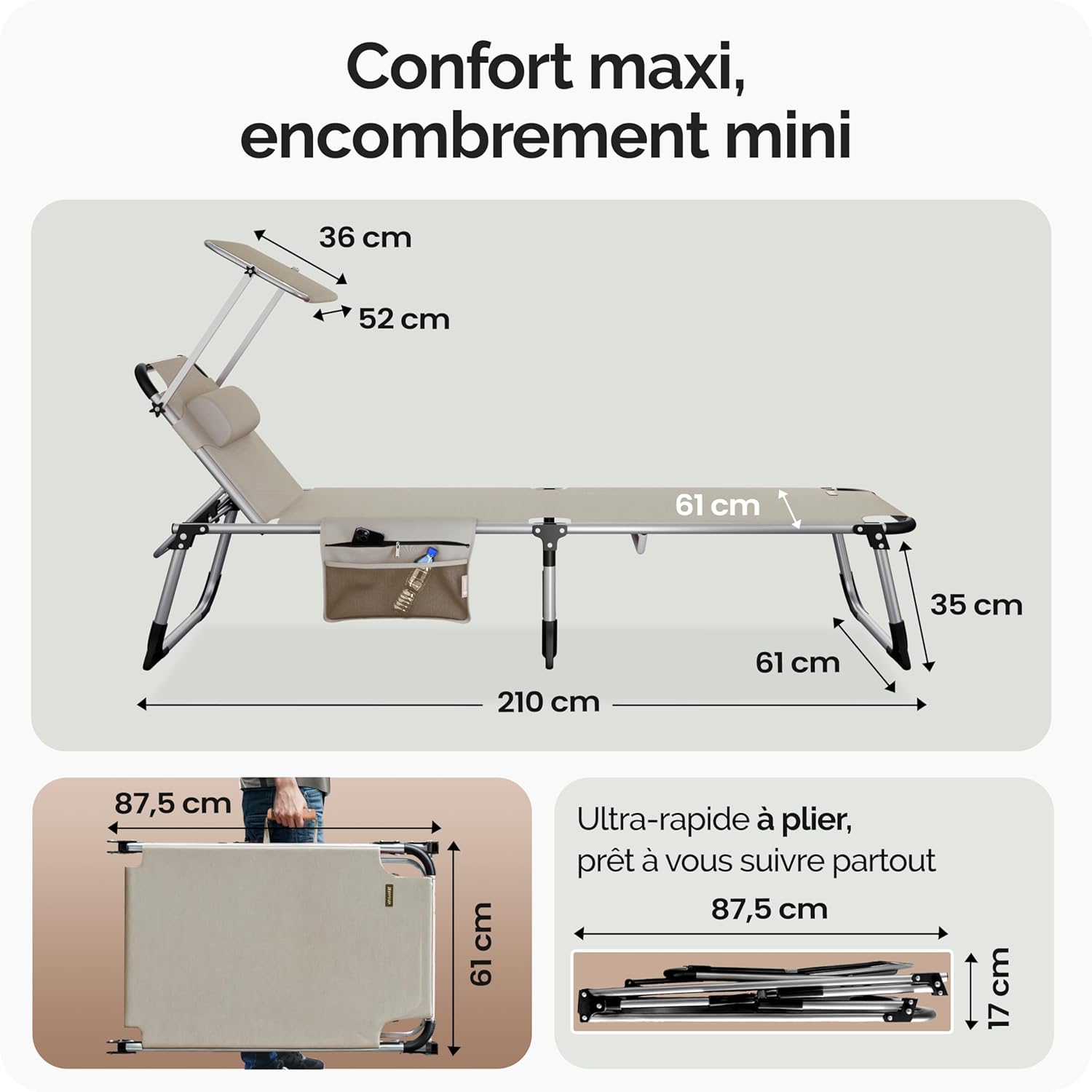 To fold your sun lounger for easy transport and space-saving storage: