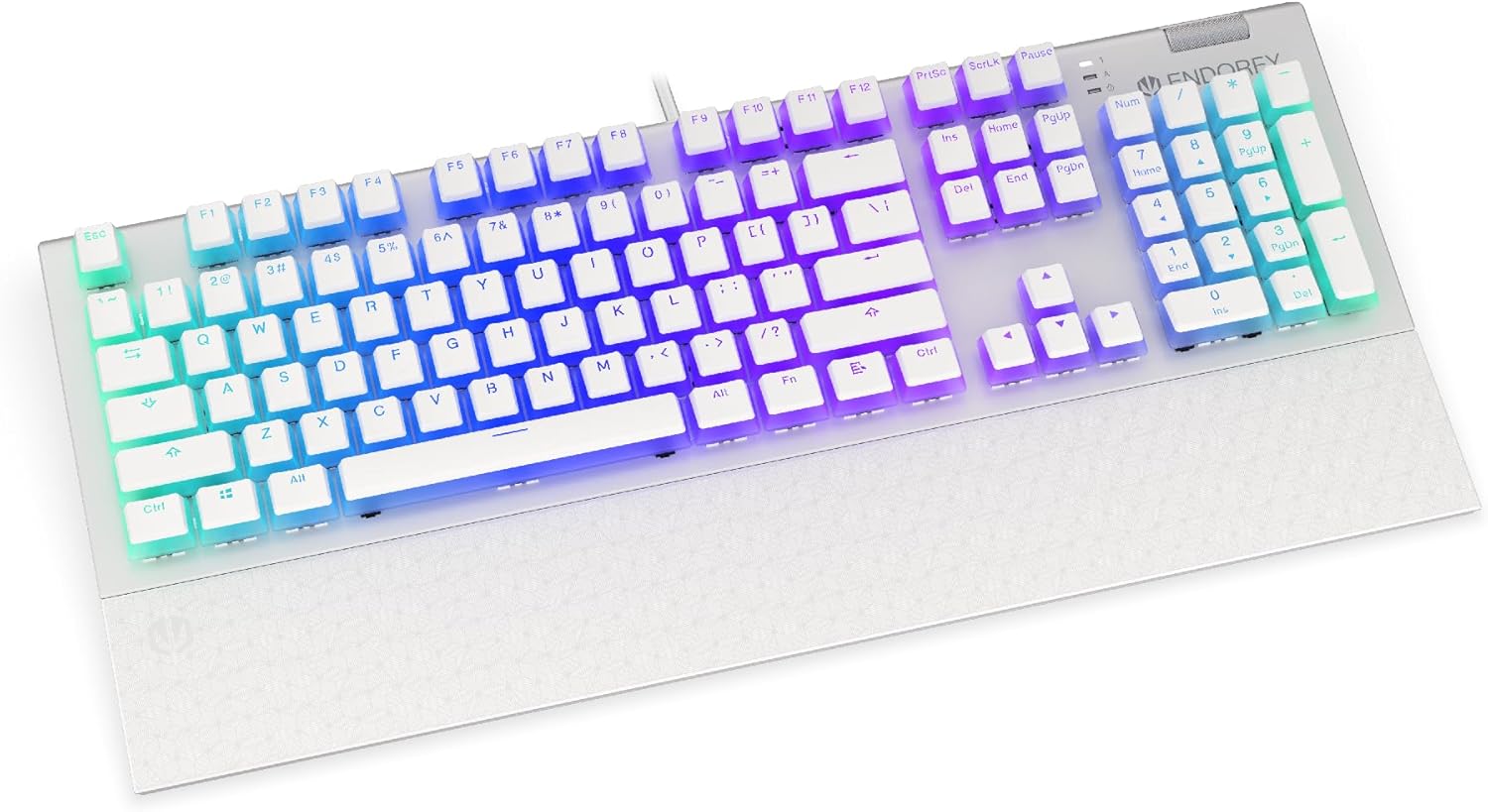 The keyboard features customizable ARGB backlighting. Lighting effects and brightness can be adjusted using the dedicated ENDORFY software. Some basic lighting modes and brightness levels may also be accessible via keyboard shortcuts (e.g., Fn + arrow keys or specific function keys), though advanced customization is recommended through the software.