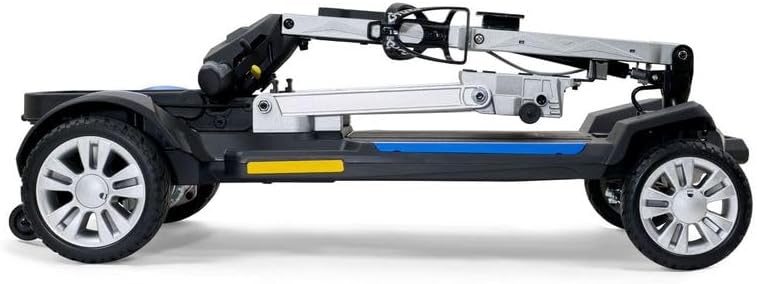 The scooter folds to a compact size for transport. To unfold: