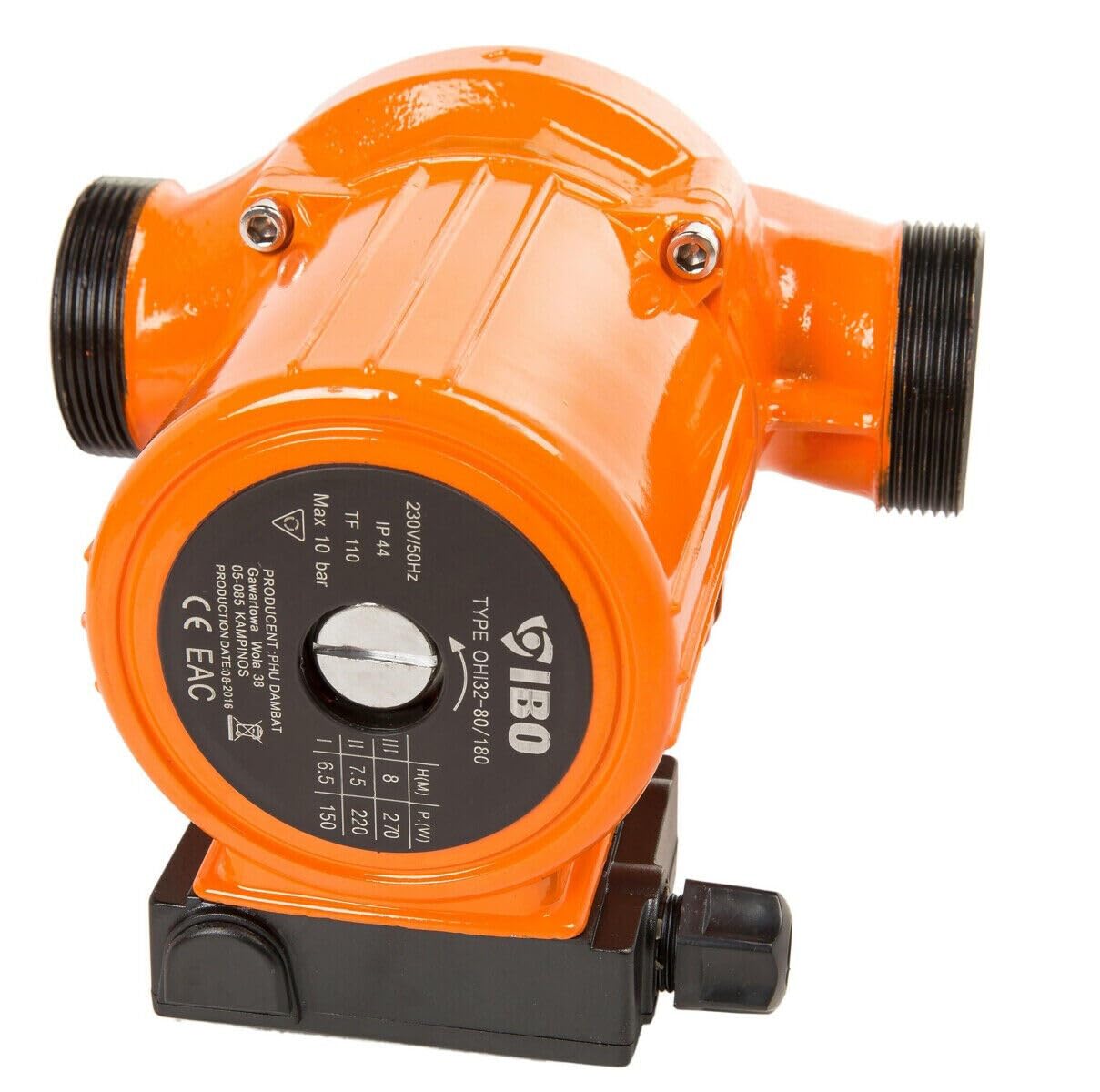 Figure 1: IBO OHI 32-60/180 Circulation Pump. This image shows the main body of the pump, typically orange in color, with connection points for the heating system pipes.